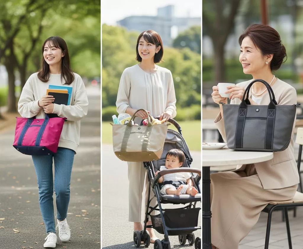 大学生が通学に使っていることもあれば、子育て中のママがマザーズバッグとして持っていたり、50代、60代の上品な女性が持っていたりと、全世代に愛されています。