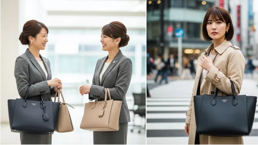 デザインにおいては、ロゴが控えめなものや、シンプルでクラシックなシルエットのバッグを選ぶのがおすすめです。