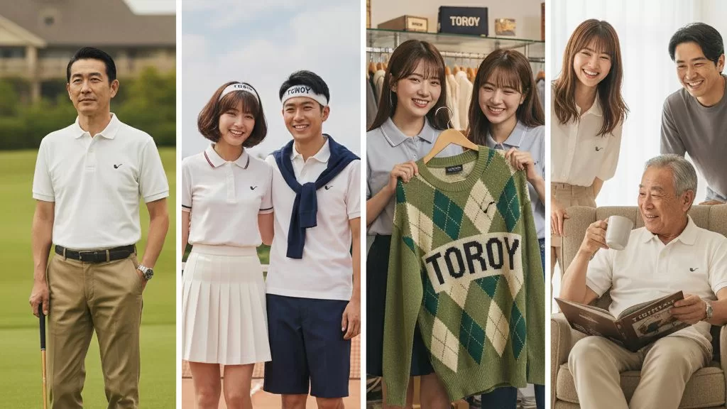 このとき、ゴルフウェアとして着やすいTOROYのポロシャツやカーディガンが、その上品なデザインで大ヒットを記録し、胸元にワンポイントの刺繍を入れるファッションスタイルの火付け役の一つとなりました。